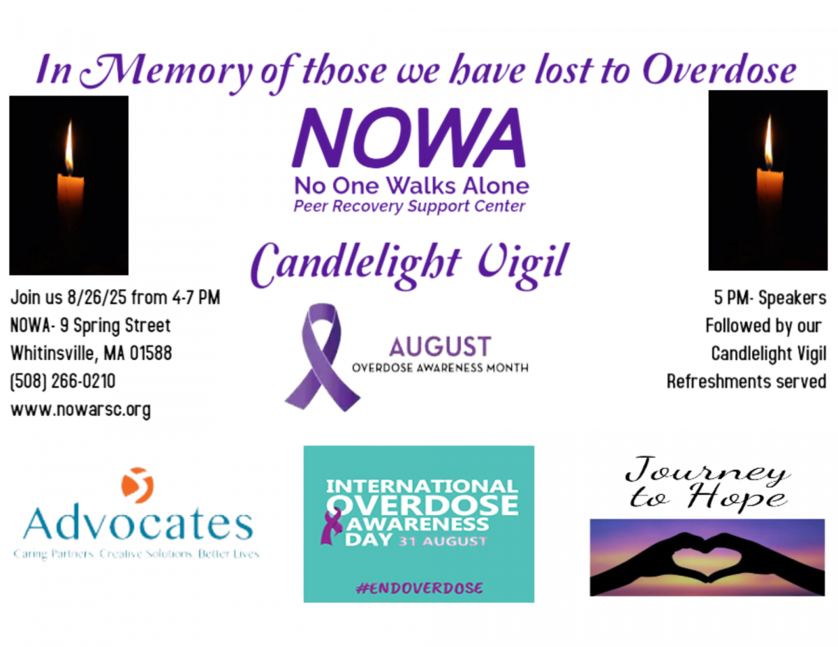 NOWA Recovery Support Center will be holding our annual Candlelight Vigil on Tuesday August 26th 2025 from 4 to 7pm.